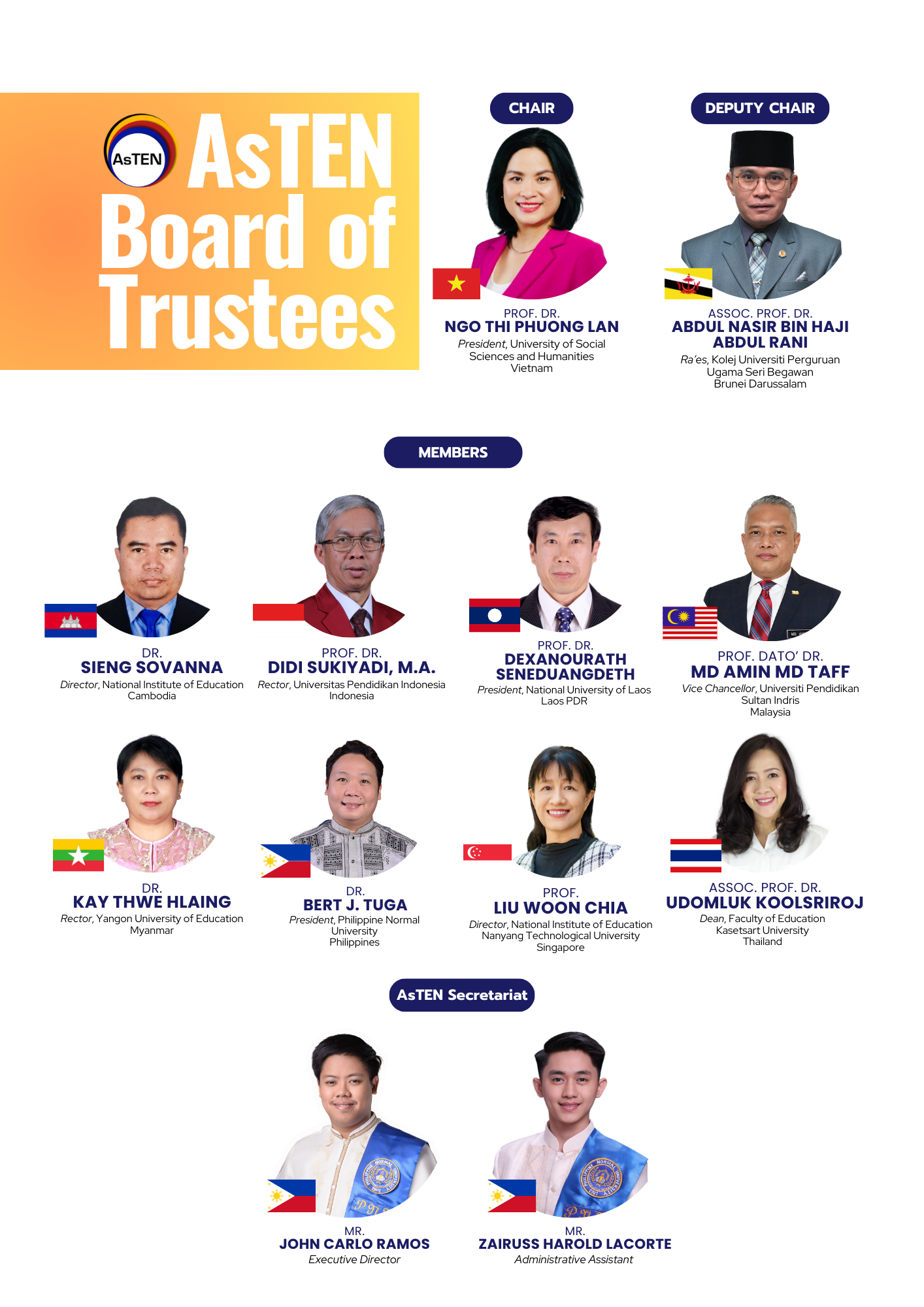 Board of Trustees – serves as the governing body of the network, which is composed of 1 member university for each ASEAN member state.